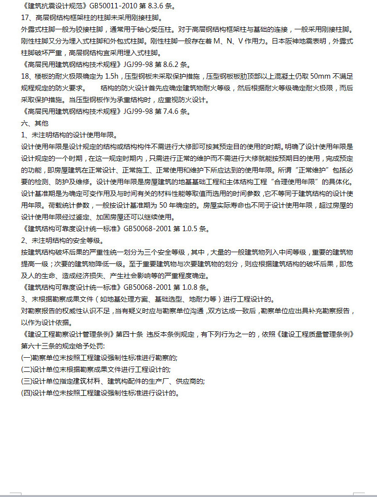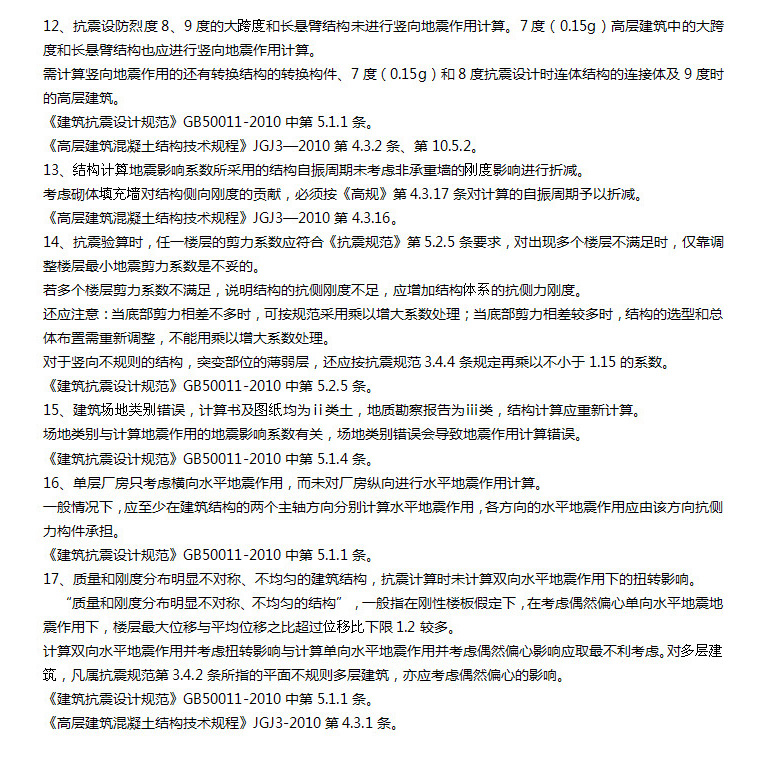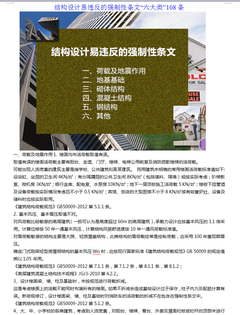 結構設計易違反的強制性條文“六大類”108條